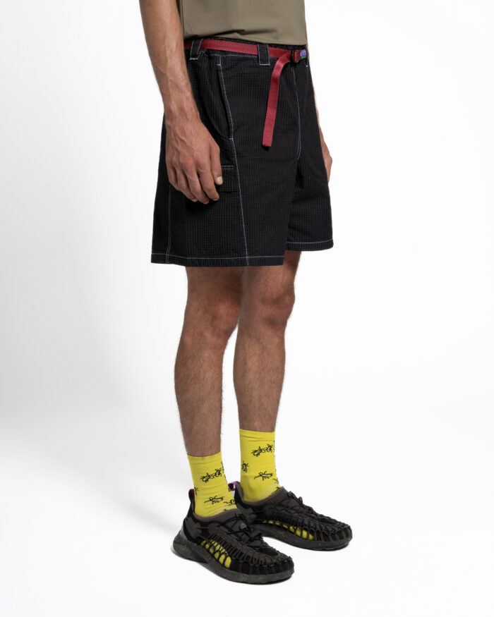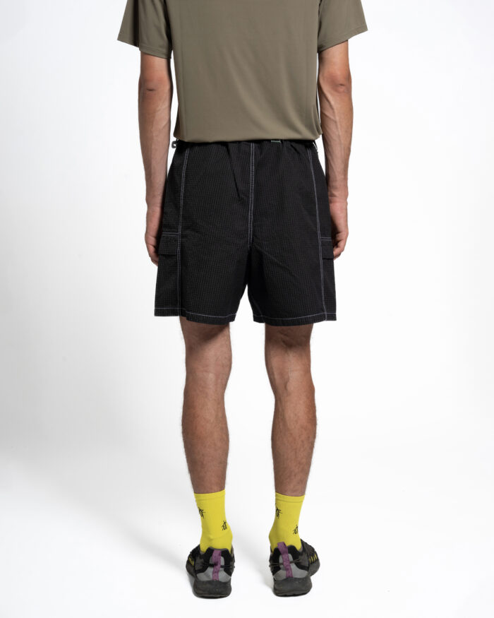 The Furio Shorts are baggy short trousers with four pockets, two of them cargo pockets fastened with a flap. They have a loop for attaching accessories, an elastic waistband and belt loops.