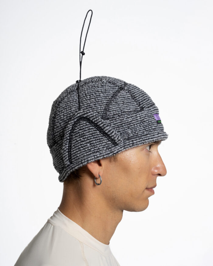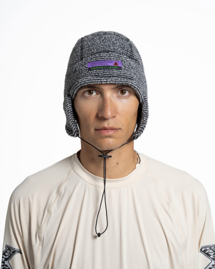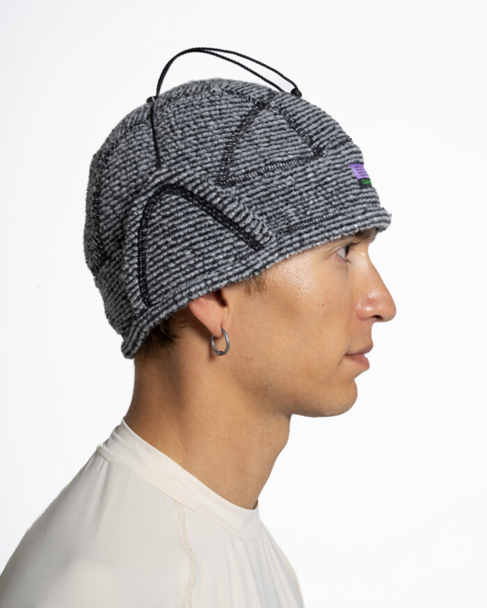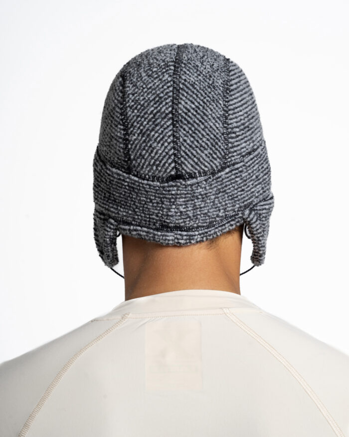 The Lahmacun hat’s composition of wool fibre and synthetic fibr es keeps you warm by controlling perspiration. Polyester on the inside can dr y quickly while the wool on the outside absorbs water vapour and lets it slowly evaporate into the air .