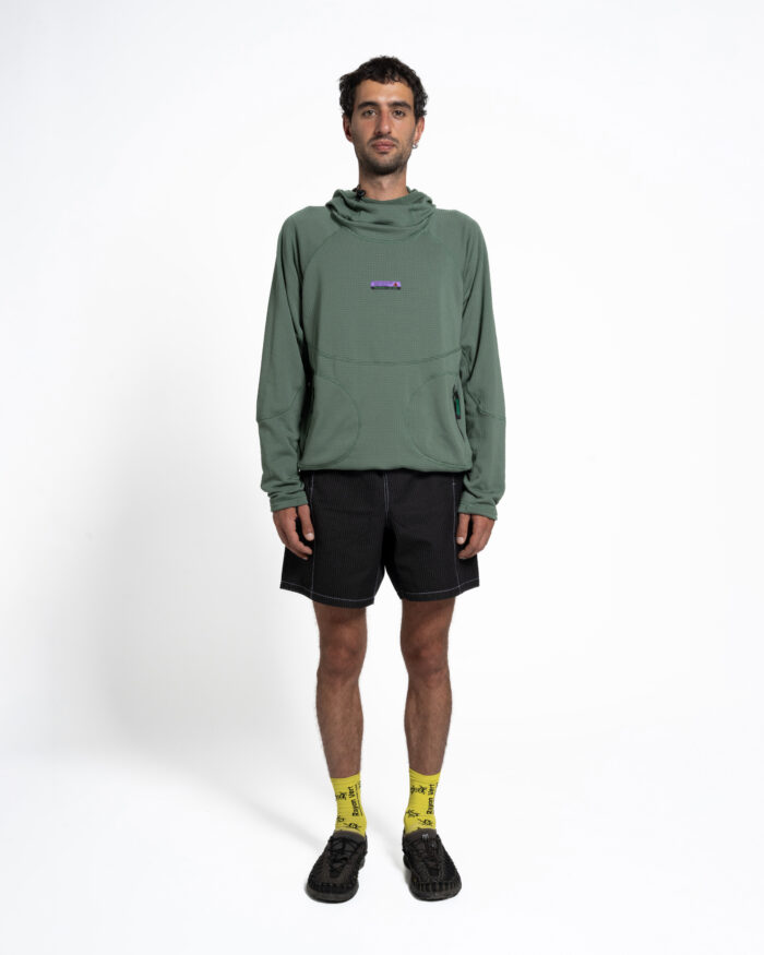The Oasis Fleece has an adjustable hood that can cover the entire face. The lower hem is also adjustable with one hand via a Cyberian cordlock. On the front, there are two YKK Vislon zips to keep everything secure inside the main pocket.