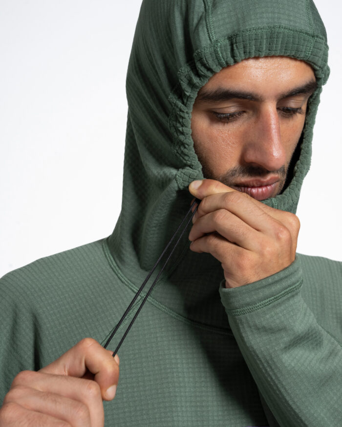 Oasis Fleece is our insulation layer designed to keep you warm during and after activity. The waffle fabric used makes it warm and soft, but because of its construction it is also particularly breathable.