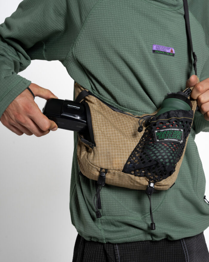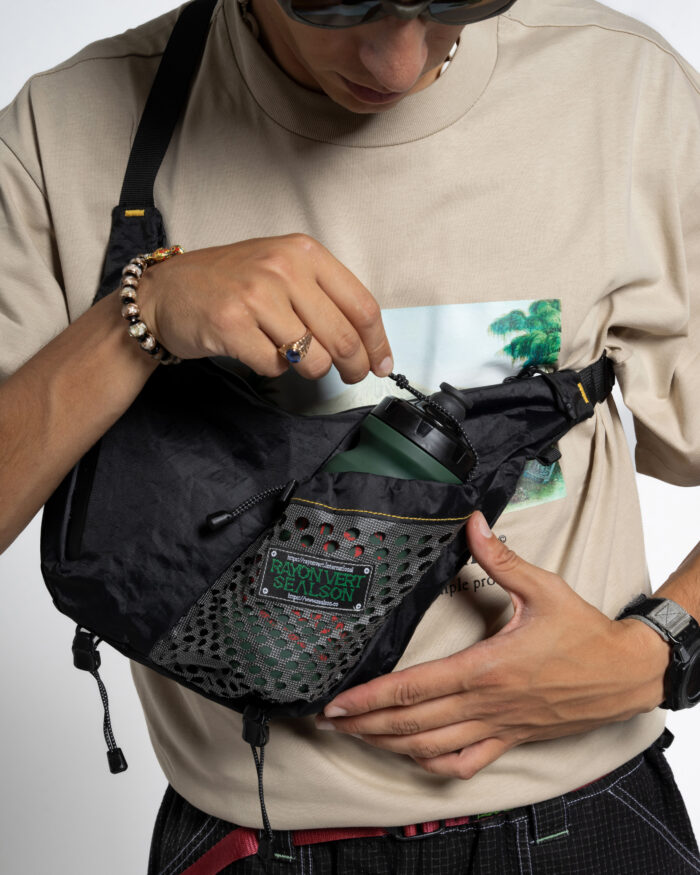 It differs from Sealson’s original version not only by the lasercut mesh on the outside pocket but also by a loop on the shoulder strap. This allows the user a more secure fit when using it during sporting activity, preventing the bag from swaying uncomfortably and keeping it securely in place.